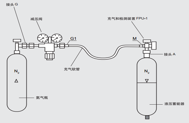 僅限用氮氣給蓄能器充氣。 切勿使用氧氣!爆炸危險!如...